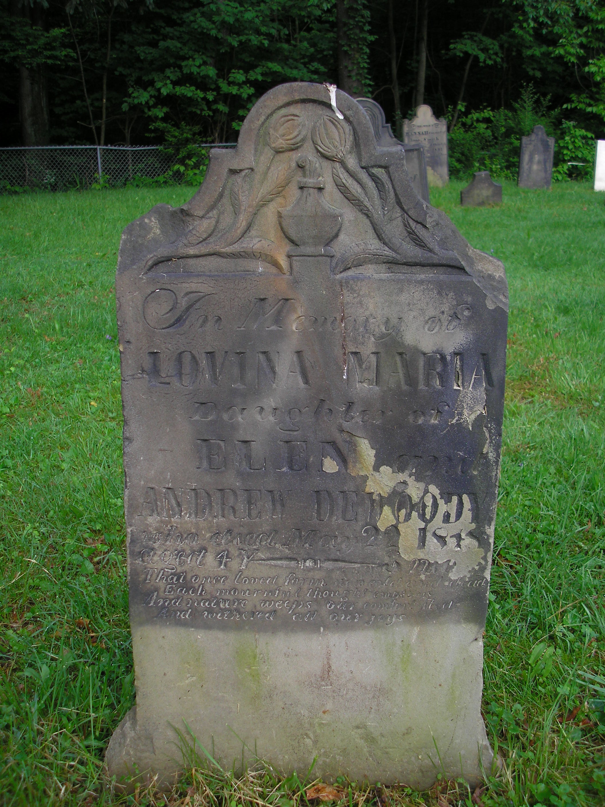 Born: Cal Feb 1844 Christened: Died: 22 May 1848 1 Buried: - Old Pioneer Cemetery, Franklin, Venango Co, PA 1