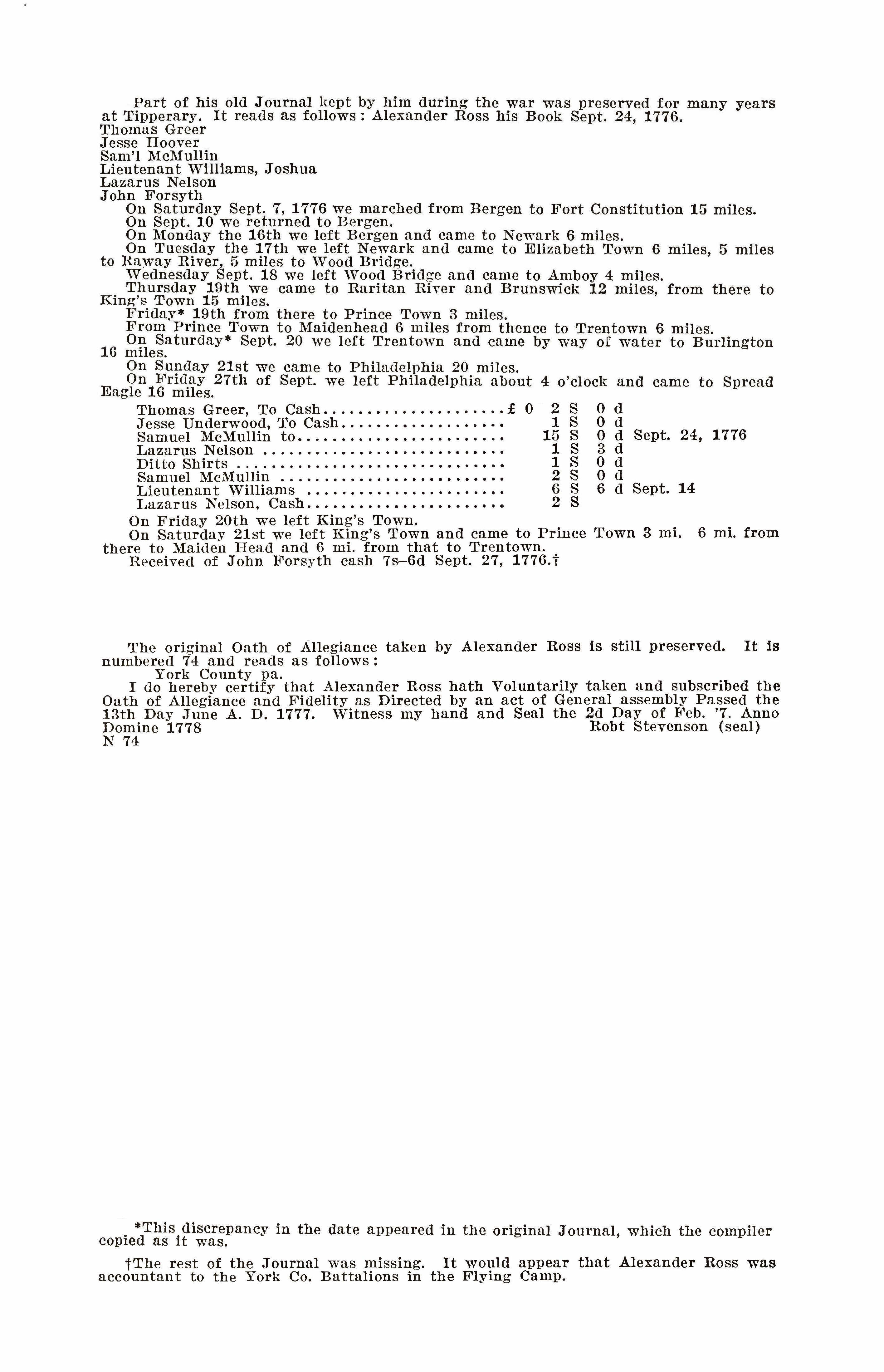Oct. 9, 1782, Alexander Ross was appointed judge of elections for York County. In 1784 he was appointed collector of the State Supplies for Warrington Township. In 1784-5 he was appointed collector of the Sinking Fund and Eighty-one Emission Tax.