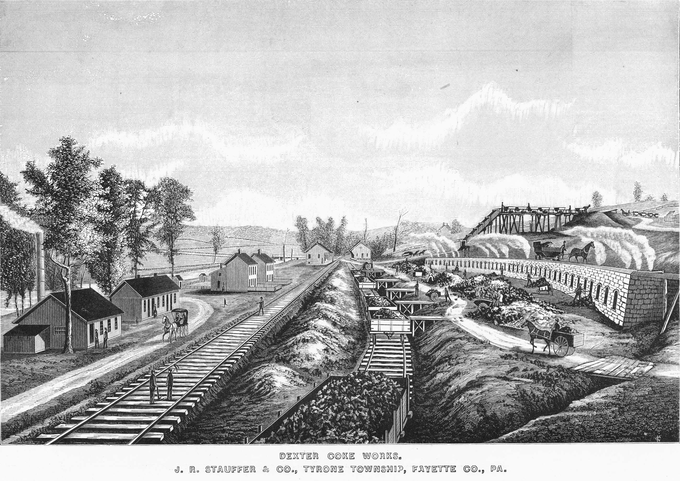 After attending the common schools he went to Mt. Pleasant, Pennsylvania, and engaged in the mercantile trade, entering into an active business life, becoming interested in many great and prosperous enterprises, viz.: Coal, coke, banking, iron and steel business. In 1873, in connection with his brother, he began to operate coal mines, and built coke ovens on the home farm, Upper Tyrone township, Fayette County, and carried on these operations for more than thirty-three years under the style of Joseph R. Stauffer & Company. The banking business was perhaps the most attractive of all. In 1882 he became interested with Peter S. Loucks, in Scottdale, Westmoreland County, Pennsylvania, in a private bank known as The Scottdale Bank, and continued this successful partnership for more than twenty-three years, and in 1906 he purchased the interest of the estate of Peter S. Loucks, deceased, from the executors, and continued the bank as the sole owner, with capital and surplus of $200,000, and total assets more than $1,000,000. In 1887 he interested him-self, in connection with other local men of Scottdale, in the iron and steel business, and developed most successfully the Scottdale Iron and Steel Com-pany, by the management of Mr. Robert S. Kemp, who was brought from the best iron and steel district in England. This iron and steel company was sold out to the American Sheet Steel Company in 1901, and later taken over by the United States Steel Corporation. He was vice-president of the First National Bank, Connellsville, Pennsylvania, and director and stockholder in a number of banks and trust companies in Fayette and West-moreland counties, and largely interested in mining and manufacturing com-panies in Westmoreland, Fayette and Somerset counties. He was a man of great force of character, ever ready to adopt new methods if they are at all practicable, and kept abreast of the times in every way. He attained the high rank of Thirty-second degree, Scottish Rite, in Masonry. [HWC 1906 II, 258]