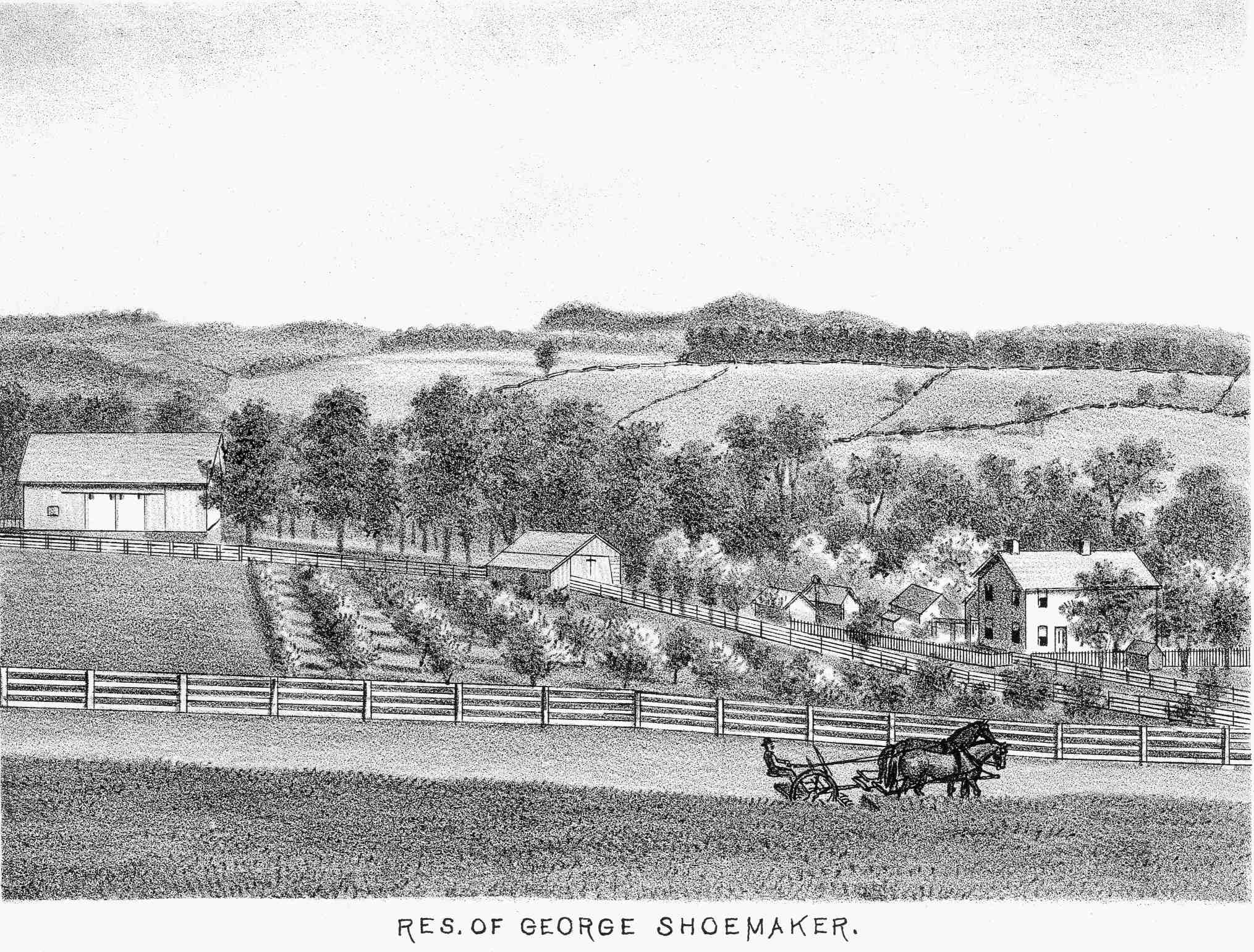 • Residence: : Armstrong Co, PA. View of the residence of George Shoemaker from the History of Armstrong County, PA, 1883; pg. 260x