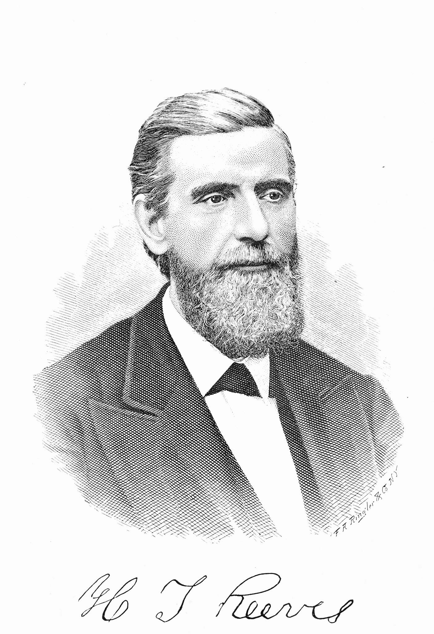 The old school house of Beaver Falls, Pennsylvania, afforded him the only opportunities for education he enjoyed, after which he sought employment in a cotton factory, and at the age of twenty became a clerk in a general country store. Here his business aptness and fidelity soon won him a partnership with Samuel McCleary, which continued for a period of four years. Subsequently he was for many years associated with his brother, John Reeves, in the mercantile business in New Brighton, which they conducted very successfully until 1865, when they sold their general store for $50,000. The brothers then moved to Beaver Falls, where they acted as agents for the sale of land for the Economites, who owned the entire tract. The firm was called H. T. & J. Reeves. They sold the entire city in lots and paid to the Economites $2,000,000. Henry T. Reeves died in Jacksonville, Florida, whither he had gone in search of health.