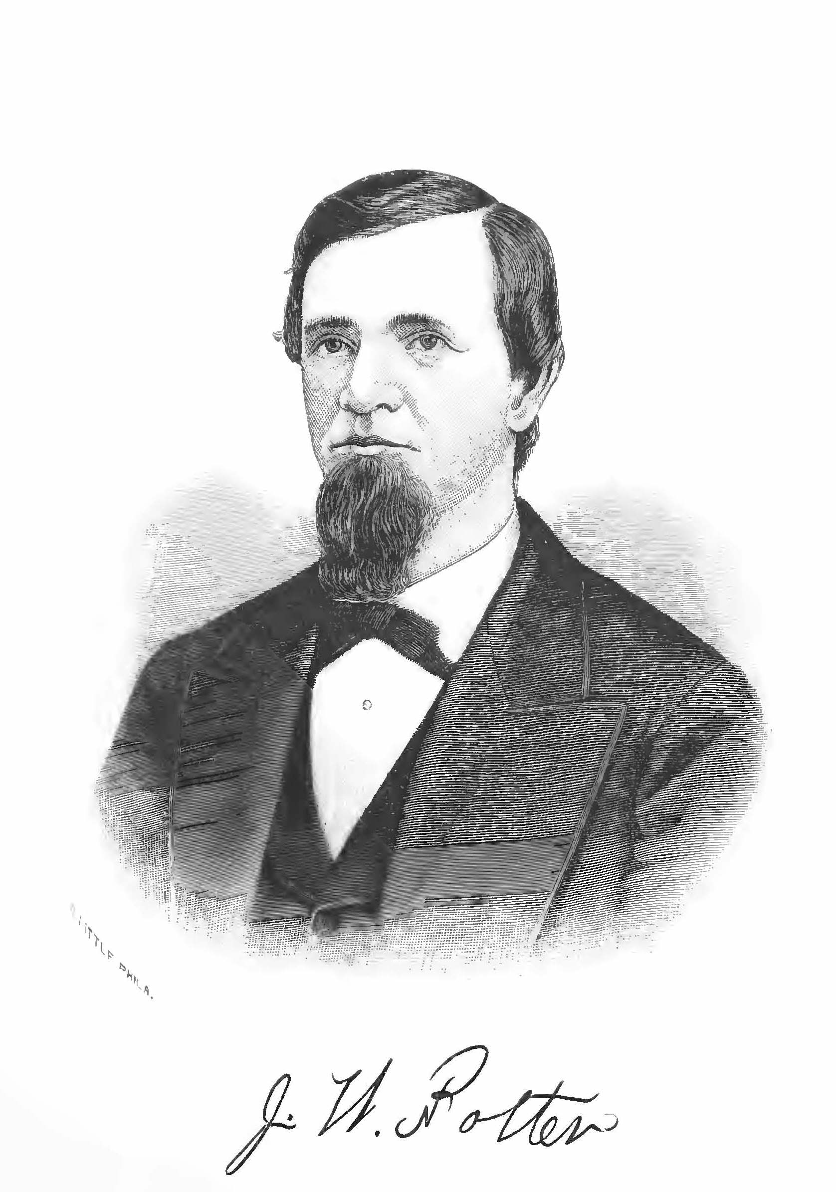 He was born in Clarion County, Pennsylvania, whence at the age of nineteen he moved to Clearfield County. His first nineteen years were spent on the farm, his studies in the local schools being interspersed with the "chores" so familiar to every country lad. His practical experience in agriculture not creating for him an enthusiastic desire to make of it a life pursuit, he turned his attention to teaching, as a stepping-stone to the medical profession. While thus employed he took a preliminary course of reading in medicine, and later attended the National Medical College at Washington City, which was broken up in 1861, the building being taken for a hospital. On returning home, he practiced his profession, and also engaged in business as a lumberman and merchant. For about eight years he conducted a store at Pottersdale (named in his honor), in Clearfield County, and in the end the demands of his financial enterprises, which proved profitable, led him to retire from medical practice. He gave some attention to the affairs of the County National Bank, at Clearfield, in which he was a director and stock-holder, and his ability as a financier made him a valued adviser in many important enterprises. In political movements he was also active and influential, and in 1874 he was elected on the Independent Democratic ticket to the State Legislature.