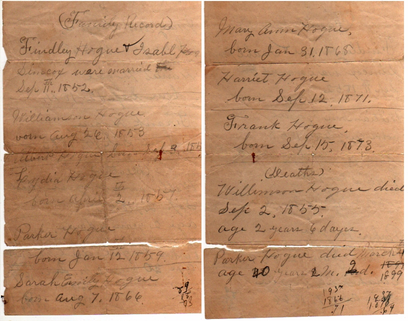 • Family Bible Records. A scan of the family records from the Hogue family bible.