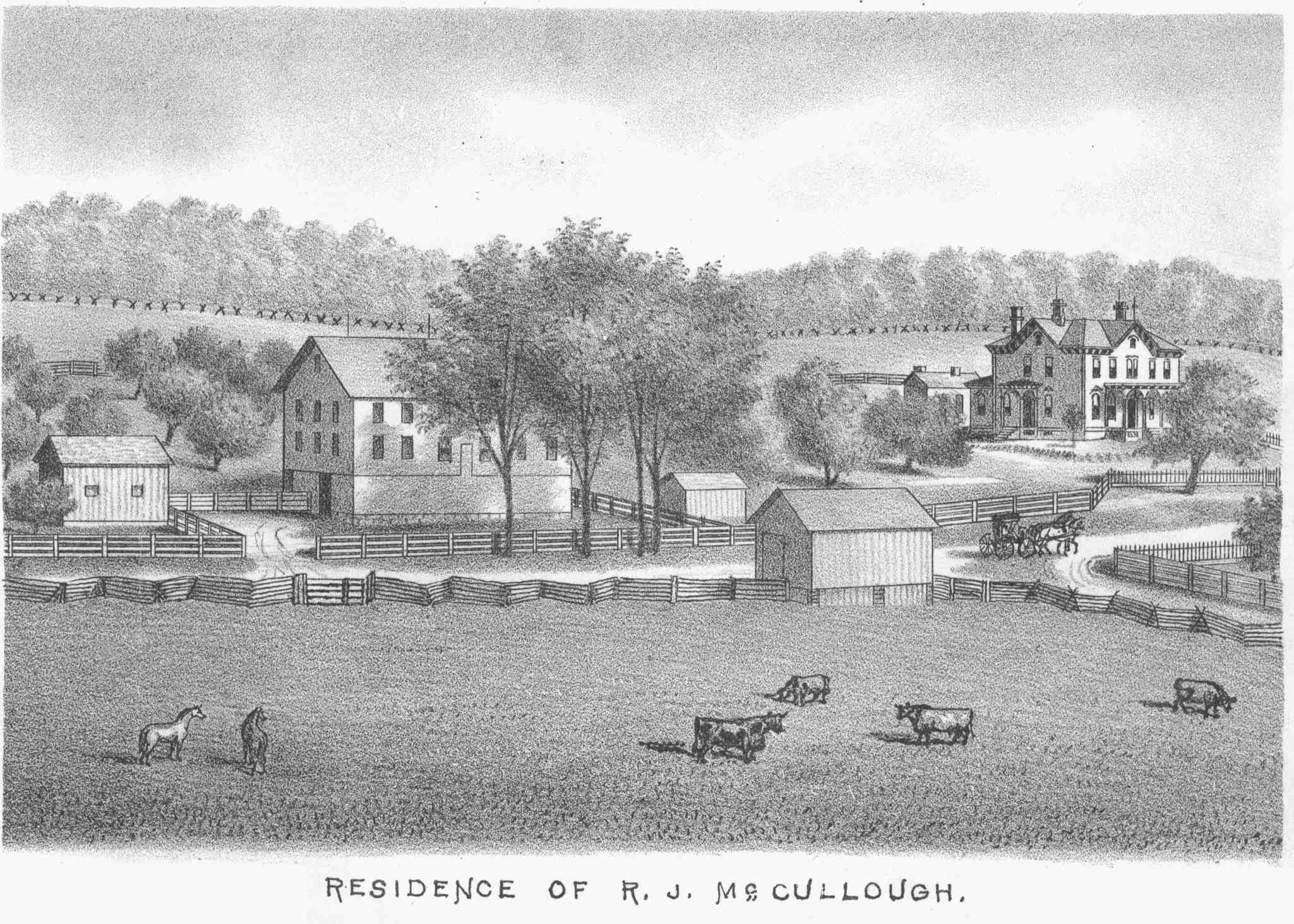 • Residence: : Butler Co, PA. View of the residence of R. J. McCullough from the History of Butler County, PA, 1883; pg. 376x