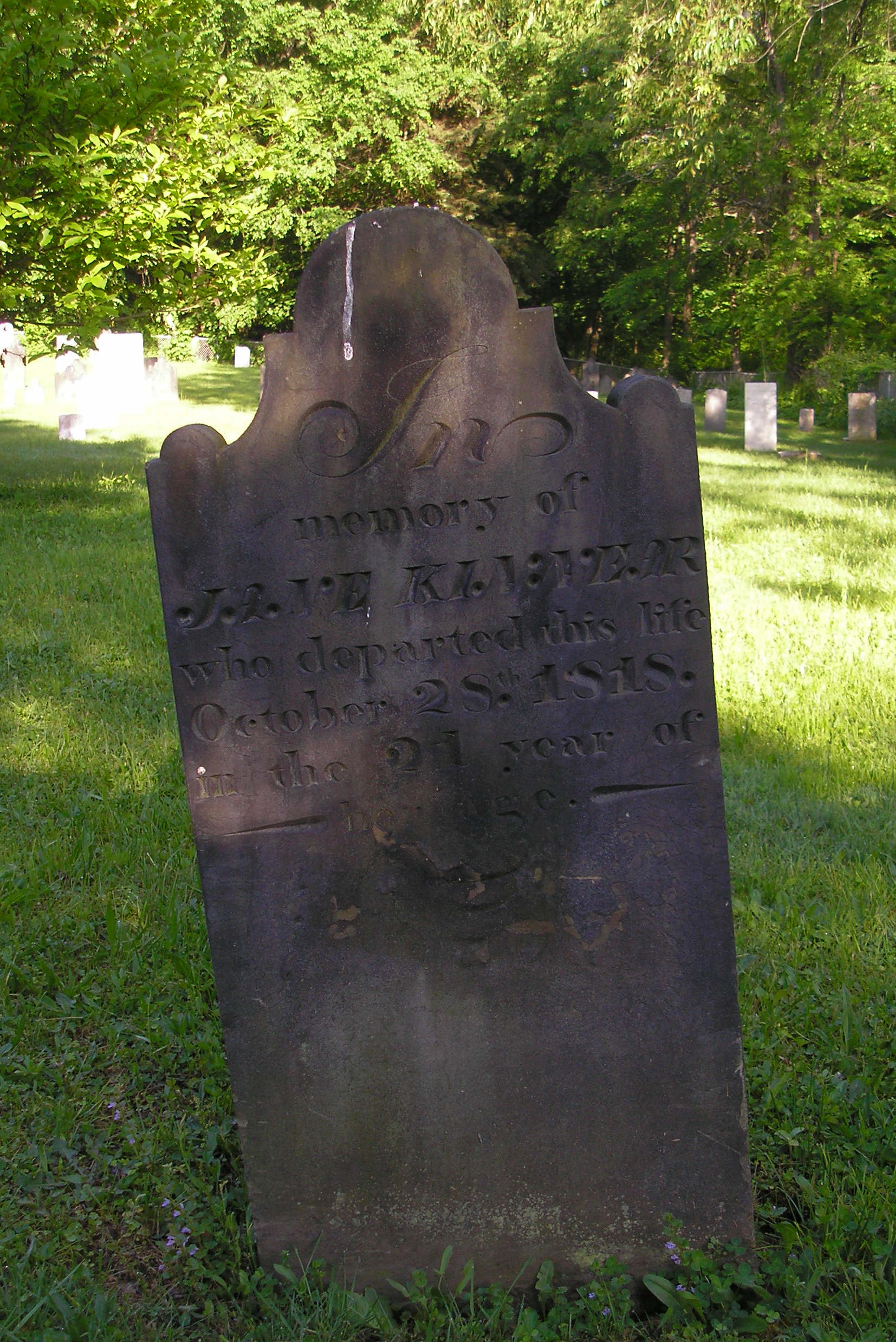 She died in 1814 in Huntingdon County, Pennsylvania. [KK, 112] But this stone is quite readable, and stands next to her father's in the cemetery. It's not clear who else this might be.