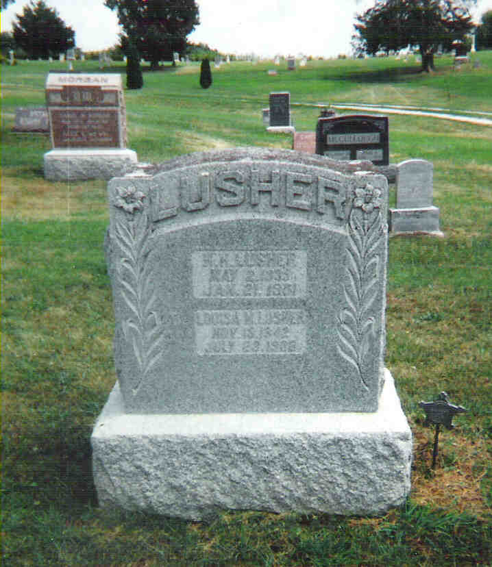 In the fall of 1881 he was elected auditor of Wayne County, and in January, 1882, removed to Corydon to assume the duties of his office. January 1, 1884, he was appointed postmaster at Corydon, a position he held until October, 1885, when on account of the change in the political complexion of the administration he was succeeded by the present incumbent, Mr. Whittaker. Mr. Lusher is an honorable and reliable citizen and has performed the trusts imposed on him by his fellow-citizens in an efficient and satisfactory manner. He is one of Wayne County's most respected and influential men, and in political circles is an earnest and indefatigable worker for his party. Mr. Lusher was married in 1866 to Miss Louisa Mitchell. They have four children - Frank, Ray, Ethel and Auria.