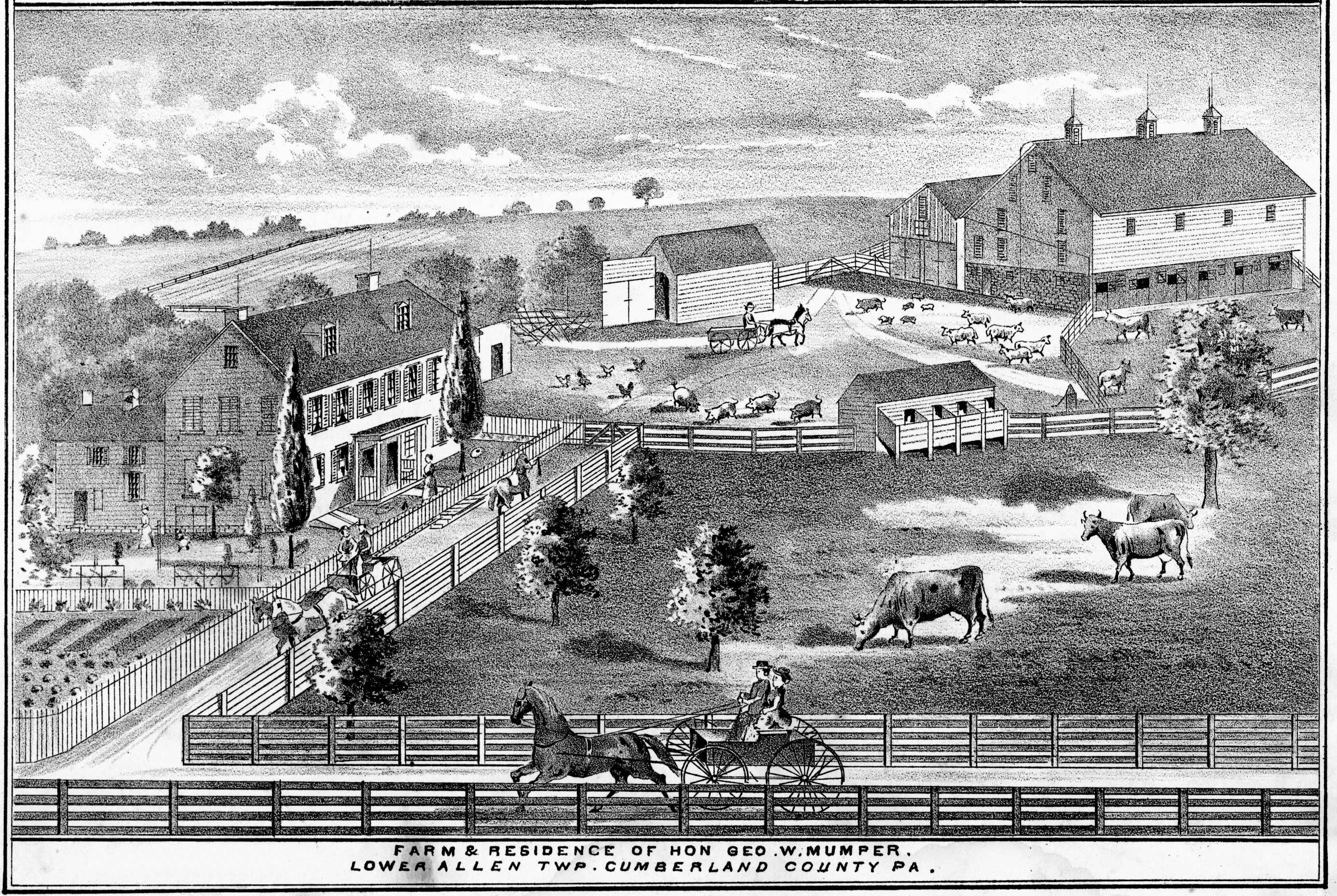 He grew up a practical farmer, and remained at Dillsburg until his marriage, when he bought a fine farm property in Lower Allen township, Cumberland County, on which he made his home until the spring of 1901, when he removed to a spacious residence at Elmwood.