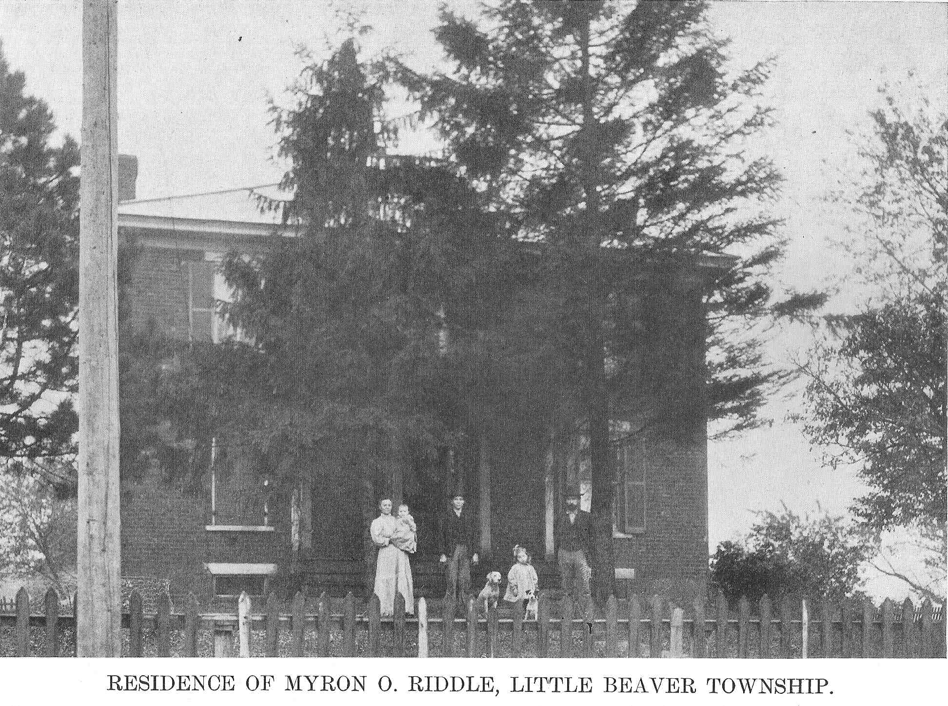 In 1876 his parents moved to Little Beaver Township, Law-rence County, Pennsylvania, where he thereafter resided. He received a somewhat limited education in the common schools of the community, the greater portion of his time having been devoted to assisting with the work on the farm. When a mere boy it fell to his lot to care for between forty and fifty head of cattle. Mr. Riddle remained at home until after his marriage, when he took charge of a farm for his uncle, O. I. Riddle, for two years, and in April, 1900, he purchased his own farm of 130 acres from the John Wallace heirs. All of the farm buildings, including the house, a brick structure, which was erected in 1876, were on the land at the time of his purchase. There Mr. Riddle engaged in general farming.