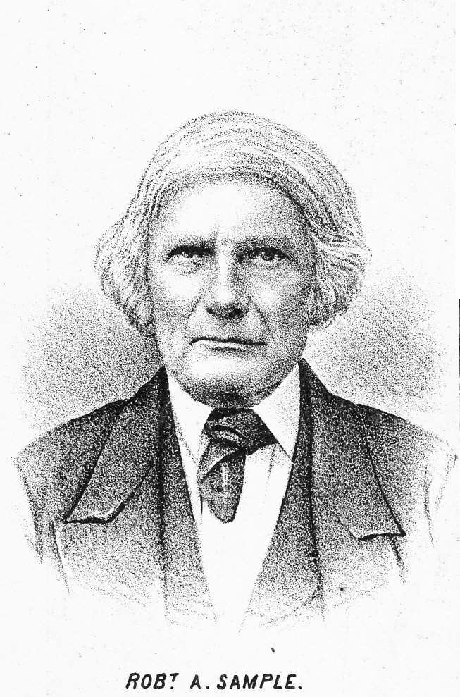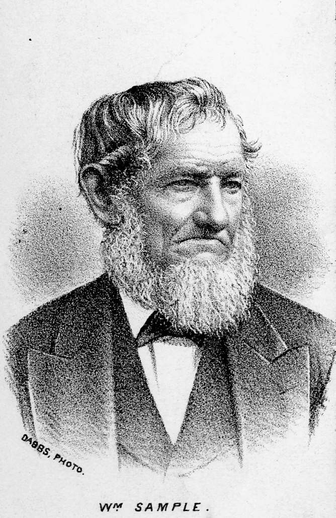 He was a noted Indian fighter and Revolutionary soldier. He located in Ross township, Allegheny County, Pennsylvania, in 1790, and there owned four hundred acres of land. He was a farmer and miller and was a man of prominence until his death at age of seventy-six years. His life was spent amid pioneer surroundings and was a constant conflict with the wild forces of nature and the native Indians. He fought these foes as well as the uniformed enemies of his county during the Revolutionary War and once had the sorrow of knowing wife and child were in the hands of the natives. But their lives were saved by a squaw, to whom Mrs. Sample had shown kindness in more peaceful days, and they safely reached home. James Sample was the second elected sheriff of Allegheny County, and until his death retained a strong influence in the county. [GPHWP, 796]