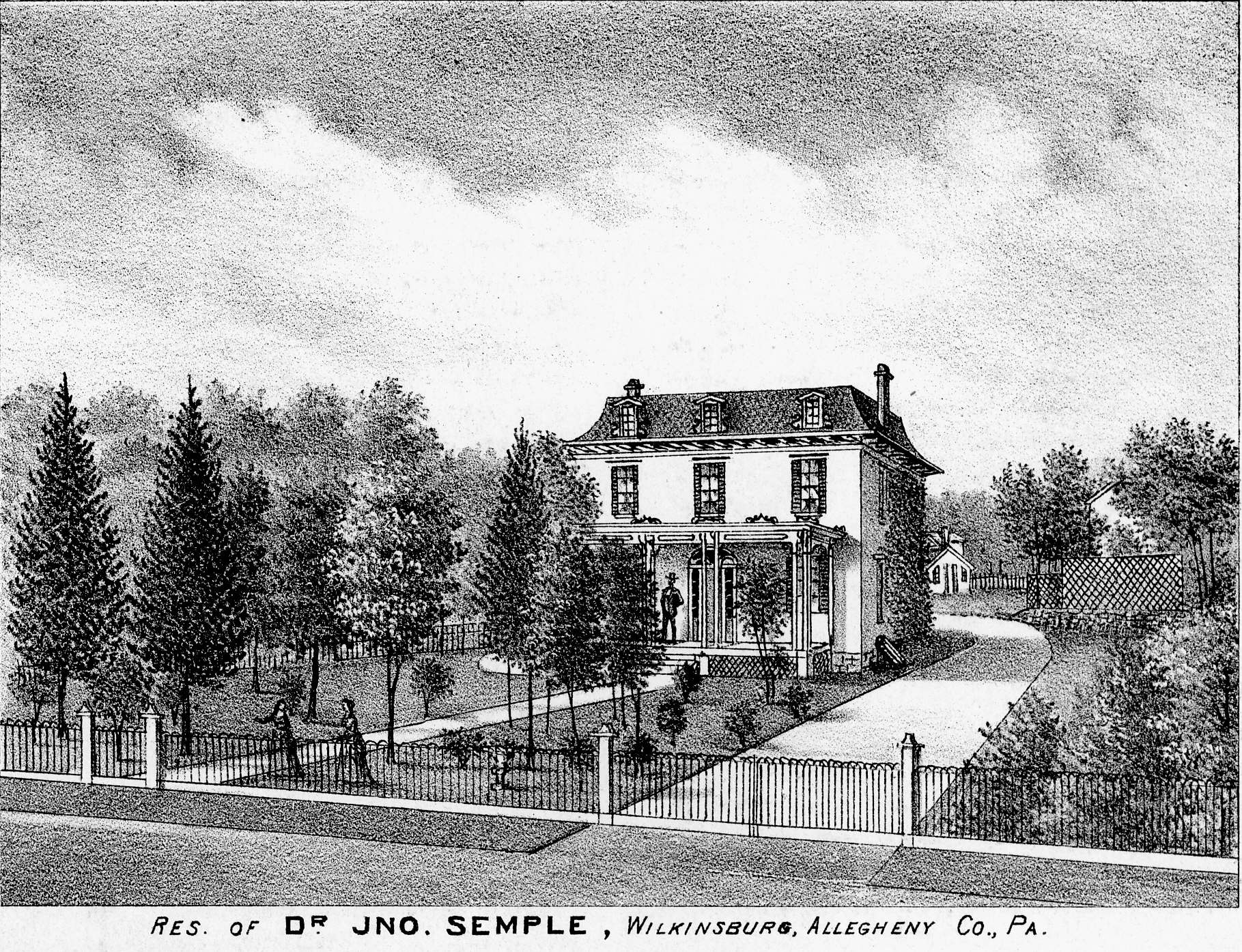 After practicing a year in Allegheny City, Dr. Semple located in Wilkinsburg, where he then remained, and built up an extensive practice. He gave free attention to the County farm, Old Ladies' home and Mute school. He was a member of the County, State, American and International Medical societies, the Masonic fraternity and the Presbyterian Church, in which he was for thirty-eight years a member of session. He was active in supporting schools, and the republican party. [HAC 1889ii, 337]