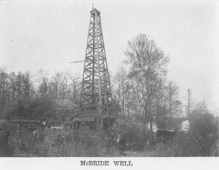 Following the death of his father, his mother moved to Winfield Township, Butler County, Pennsylvania, where she taught school for a time and then moved to Greene County, in the oil fields, where she opened a boarding house. About this time he made his first money in the oil business, being engaged by an operator to clean the paraffin out of four oil tanks at Titusville, and although the beginning was humble, it opened the way to the future success which crowned his efforts in the industry. Through many boyish efforts to gain capital, and they were constant and earnest, including selling newspapers, working on a farm and as an employe, for several years, of the Lowry House, at Butler, he made some progress, and in 1887 he went to work for his brother, the late Kerr ("Curly") McBride, as an oil pumper. It was Kerr McBride who got the first extension of the rich field near Thorn Creek. Isaiah had the usual early successes and discouragements that awaited oil speculation, and after he began prospecting, would frequently lose all his earnings and be obliged to do ordinary labor in order to gain enough capital to continue prospecting. The first well that returned any adequate result was on the Sweeney farm at Coylesville, and it was owned by an organization called the Store Box Oil Company, in which James Haymaker, deceased, and Michael Haymaker, owned a three-fourths interest, and J. W. Frazer, deceased, and Mr. McBride, a one-fourth. They drilled four wells, paid $1,500 bonus and before they were through they lost $14,000 on the venture, and out of the twenty-two wells sunk there, but thirteen barrels of oil were sold. He continued with varying success, as was the way with speculators, becoming equally familiar with ill and with good fortune. The well which finally made him famous in the area was struck in Butler Township, May 9, 1905, and was the twenty-third well in which he had owned an interest, with a proportion varying from one-eighth to one-half. In the well just mentioned, which brought him ample reward for all his years of effort and many vicissitudes, was one in which his ownership was one-fourth. The limits of the present article prevent the insertion of extracts from the Butler newspapers regarding the interest excited at the time the McBride well was drilled into the sand on that mild afternoon in May, and the response of pure petroleum was of such quantity that it was immediately placed in the "gusher" class, producing about 2,400 barrels per day. Mr. McBride was the hero of the hour, for he had located and also done the drilling of the well. On May 25th the well passed into the possession of the Southern Oil Company.