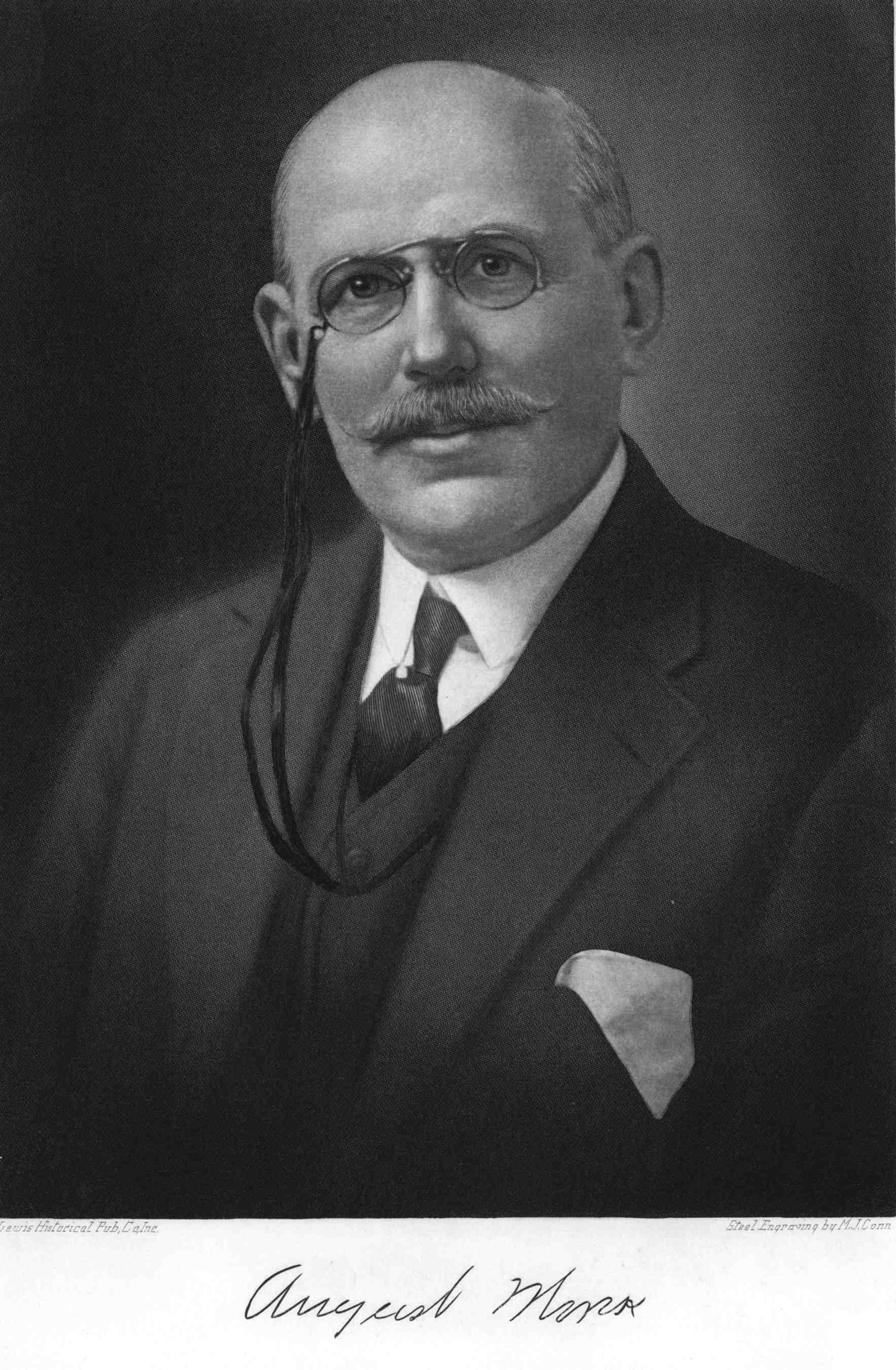 He received his preliminary education in the public schools of Warren, Pennsylvania, subsequently studying in New York and Philadelphia. Having early decided to devote himself to the science of optics, he took a course in optometry in the Pulte Medical College at Cincinnati, Ohio, which he attended for three years, later, as opportunity offered, taking advanced work in the Butler School of Optics (1887) and the Philadelphia Optical College. Dr. Morck had commenced business life in the jewelry trade at Warren, in partnership with his brother, but soon becoming interested in what has since been his specialty applied all his energies to perfecting himself in its requirements, and pursued his studies with the thoroughness characteristic of his race, with the result that he became one of the foremost authorities in his line in western Pennsylvania. He earned the most cherished reward of the scientific student and investigator, recognition by his professional associates, who may be assumed to be the best judges of his achievements. For an exhaustive article on ophthalmology the Academic Parisienne des Inventeurs conferred a life membership on him; and three types of bi-focal glasses which he invented were in high favor among opticians, the perfection bi-focal, lenticular bi-focal and opifix bi-focal. In 1886 he removed to Oil City, where he established himself, doing business under the name of the Morck Optical Company, which enjoyed the patronage of the most intelligent element in the entire section. Dr. Morck had the confidence of his fellow men in the everyday affairs of life as well as in his own particular field. While at Warren he took a prominent part in the administration of the municipal government, having served a number of years as a member of the council and one term as mayor, to which office he was elected in 1889. On two occasions he received the nomination for membership in the State Legislature, but declined because of his professional associations, and he was similarly honored after he came to Oil City, declining there also. He was a thirty-second degree Mason. [HVC 1919, 537]
