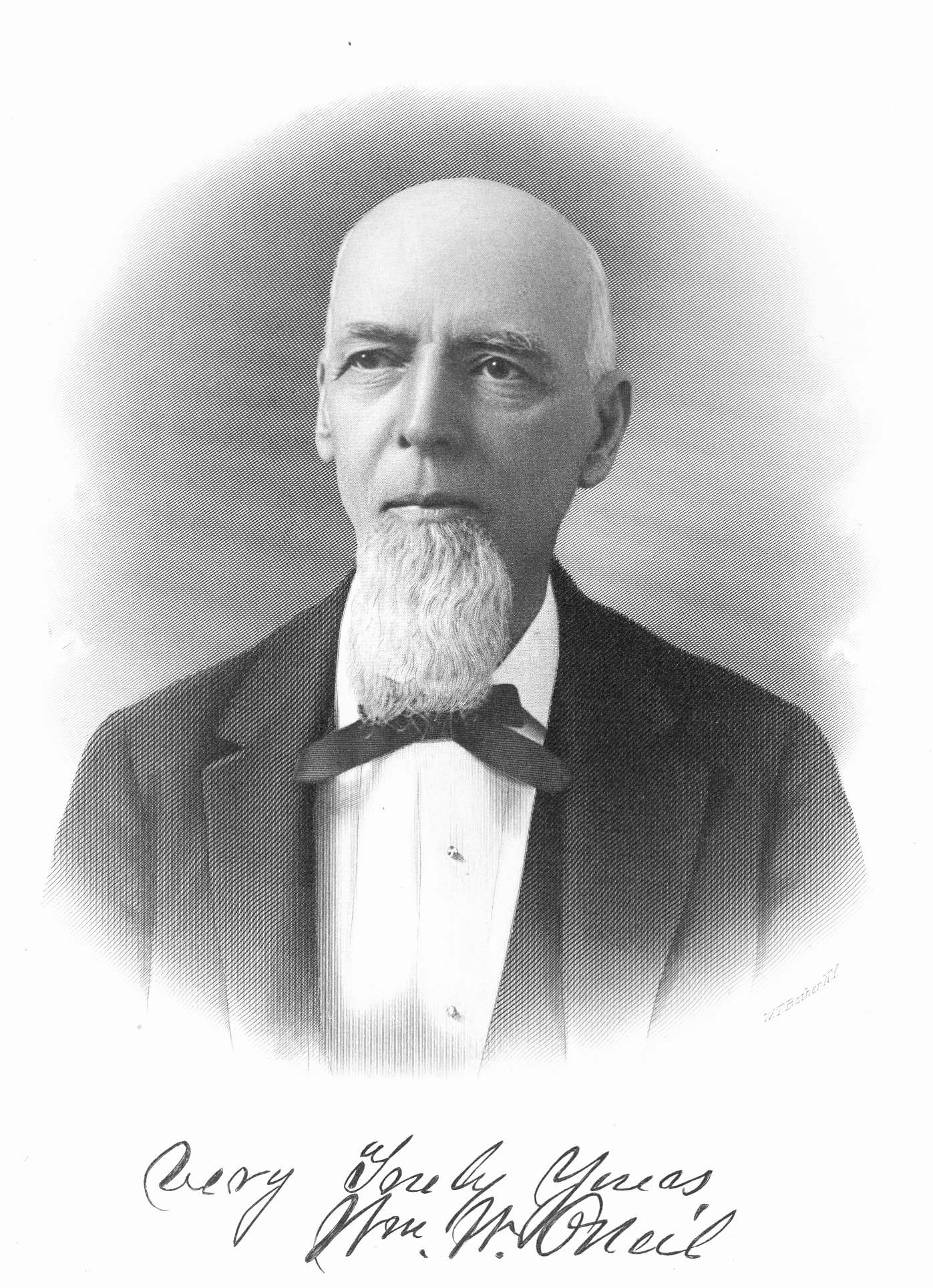 He was educated in the public schools, and began business life as a miner, the Monongahela mines. Later he became a river pilot and ran the Monongahela and Ohio rivers for a few years. Coal mining was then in its infancy in western Pennsylvania, and as he ran the rivers he noted the excellent chances for locating and developing the mines in the surrounding hills. Finally he left the river with the remark: "The coal is there, merely waits to be mined. I may go broke in shipping coal, but that will be my chronic condition if I remain a river pilot." Leaving the river, he formed a partnership with his brother, John Nixon O'Neil, operating a mine and shipping their product as J. N. and W. W. O'Neil. The brothers were very successful and extended their operations until their business, mining and shipping, became a very extensive one. In course of time they admitted the brothers, S. P. and I. N. Large, to the firm, and operated still more extensively. Finally the firm dissolved and William Woods O'Neil organized the W. W. O'Neil Coal Company, of which he was president until the company was absorbed by the combined coal companies. He extended his operations all over the coal districts of Pennsylvania and the central west, becoming a national character whose advice in business and financial matters was sought and followed. He developed with the years, and the castles he erected as he guided the river steamers past the deposits of undeveloped coal were not "castles in Spain," but all became actualities. He became the president and real managing head of the Pittsburgh and Southern Coal Company, the Marine National Bank of Pittsburgh, the First National Bank of Elizabeth, and had numerous private interests in various coal fields, as well as in other lines of business. Two years before his death he retired from business, but he retained his interest in the town where he long resided, Elizabeth, and at his death was president of the town council. For many years he was a member of the National Board of Steam Navigation, serving on its executive committee.
