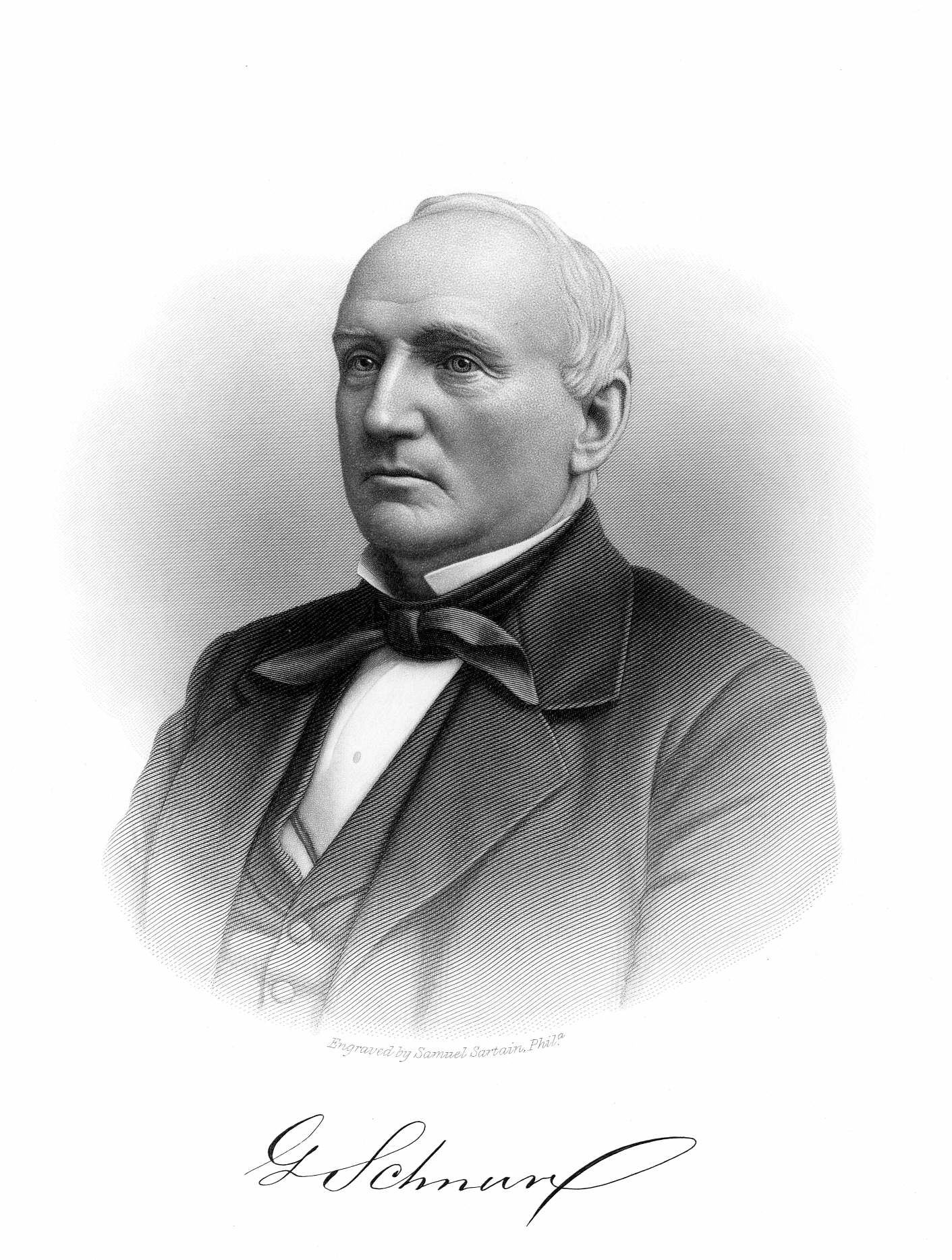 During his early life he assisted his father on the farm. During the winter seasons he had from two to three months' instruction in schools where some were taught in English and others in German. The remainder of the year was spent at work. When but nine years of age he left the parental roof, and was employed by Robert Foster, who kept a store in Hartleton, Union County, Pennsylvania. This early beginning impressed upon his youthful mind a love for mercantile pursuits, and laid the foundation for that industry and thrift which, in after years, resulted in financial success. After serving Mr. Foster a short time, he returned to his father's farm, where he remained during the summer, and then entered the service of A. D. Hahn, who kept a store and tavern at Hartleton, and remained four years. In 1825 Mr. Hahn moved to New Berlin, where he engaged in mercantile business, and George Schnure accompanied him, remained his clerk for one year, then went to Northumberland, and for three years was clerk in the store of John A. Sterrett. The store then being purchased by John Guyer, he continued with the new owner nine months.