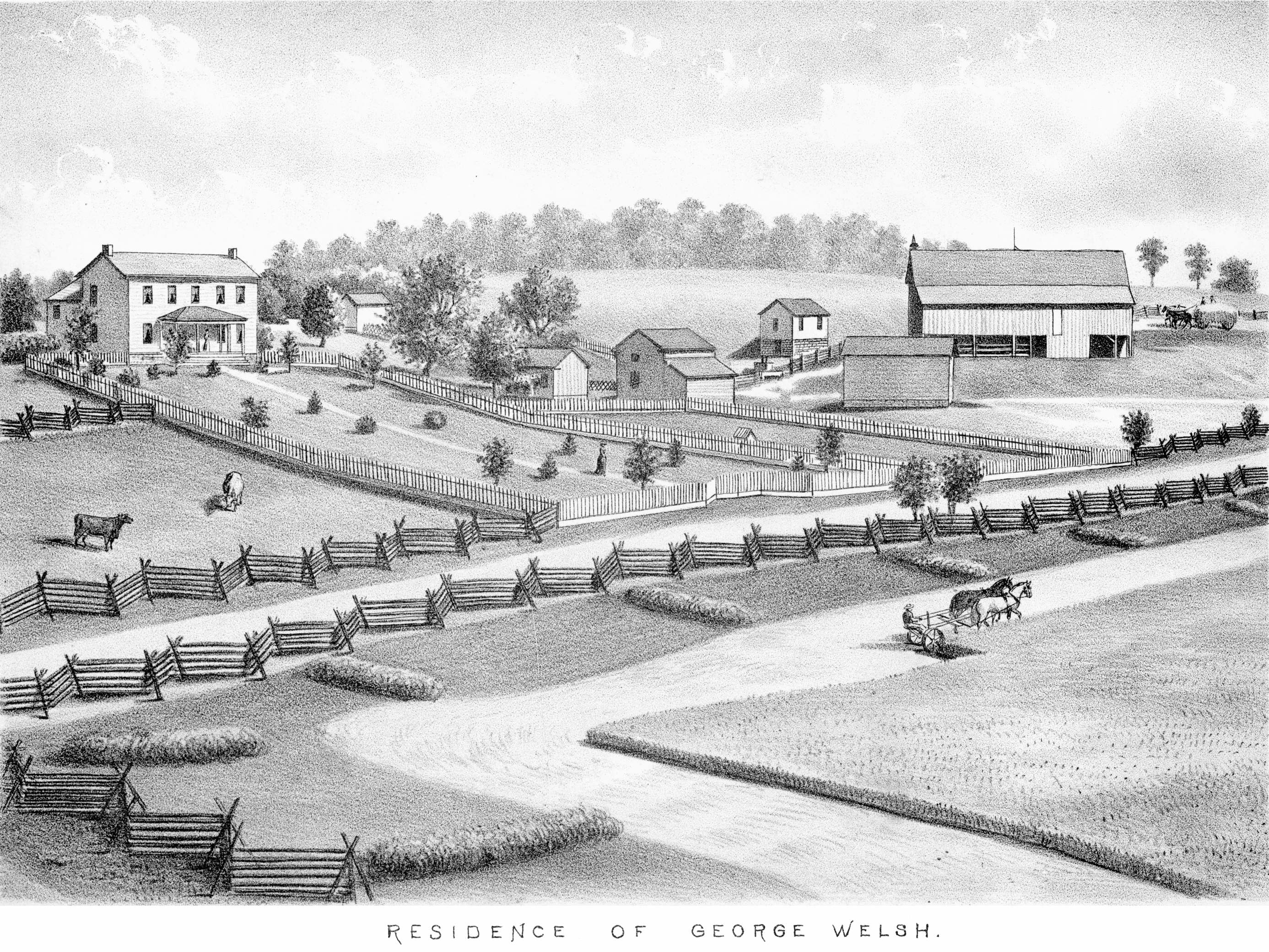 • Residence: : Penn Twp, Butler Co, PA. View of the residence of George Welsh from The History of Butler County, PA, 1883; pg. 280x