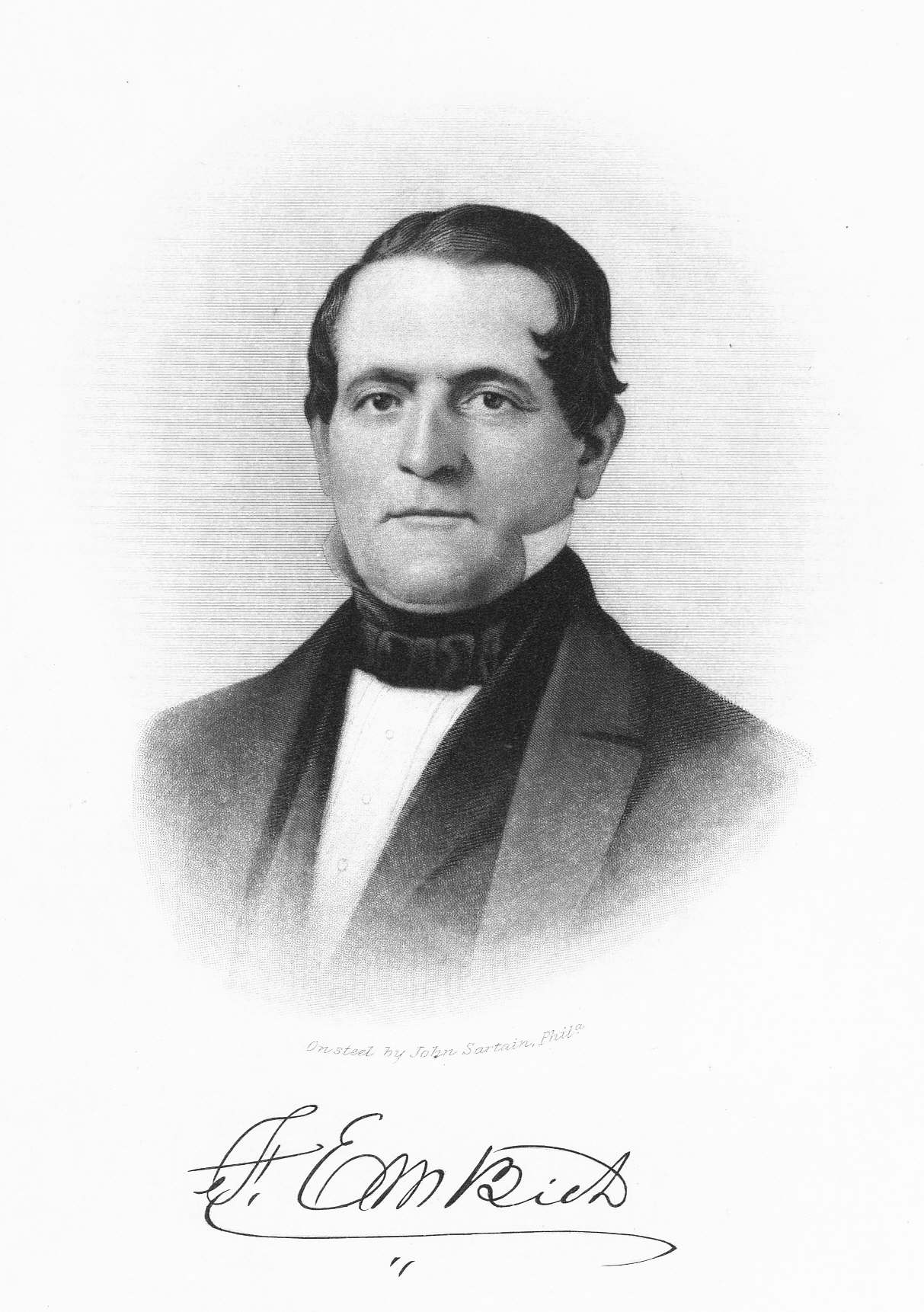 He received the educational advantages afforded by the private schools of his day, and was desired by his friends to prepare for the ministry, but that profession was not suited to his taste. Early in life he became quite influential in political affairs, and under Governor Ritner's administration he was commissioned on April 28, 1836, a justice of the peace for the borough and township of Lebanon, an office he held one term. Mr. Embich especially took a prominent part in the military organizations of his day, and he first appears as lieutenant of the "Lebanon County Cavalry Company," commissioned by Governor Wolf, to rank from the 22d of February, 1833, and on the 3d of August, 1835, promoted to captain of the same company. Governor Ritner, for whose election Capt. Embich was an enthusiastic supporter, appointed him June 11, 1836, major of the Independent Battalion of Lebanon County, and from that period on he seems by the following to have been in continuous service in the volunteer militia of the State: Governor Porter commissioned him captain of the Washington Rifle Company Jan. 8, 1842; Governor Shunk, brigade major of the First Brigade, Sixth Division, composed of Dauphin, Lebanon, Berks, and Schuylkill Counties, March 28, 1845, and subsequently, by the same authority, captain of the Independent Guards, attached to the First Brigade, Fifth Division, Oct. 18, 1845. At this time one of the most conspicuous military officers in the valley of Lebanon if not in the state, it surprised many that he did not tender his services to the Governor for the war with Mexico. In the first place, the quota of troops asked from Pennsylvania was so small that it was only through favoritism and great zeal in the contest which secured acceptance, neither of which Major Embich had. He was an uncompromising Whig, opposed to the annexation of Texas, and as much so to the war, which he was wont to say was brought about to advance the interests of the Democratic party. Upon the election of Governor Johnston, that functionary commissioned him brigade inspector of the Second Brigade, Fifth Division, composed of the counties of Dauphin, Lebanon, and Berks, June 4, 1849, and renewed by Governor Bigler, July 11, 1854. By Governor Pollock he was commissioned captain of the Washington Artillery May 29, 1857, and continued in commission by Governor Packer, June 6, 1859. At the breaking out of the war for the Union, although the major's feelings and military training would have led him into the service, his health was seriously failing him, and he died on the 29th of January, 1862, aged fifty-nine years.