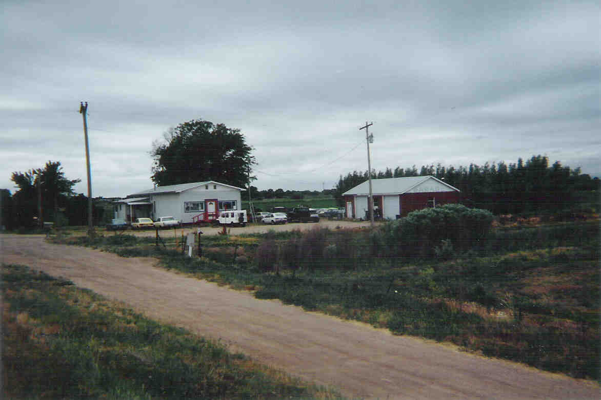 • Business: : Ione, Weld Co, CO. The building on the left was once the filling station owned by John W. Lusher. It was once closer to the road, but the building was moved when the road was made a four-lane divided highway.