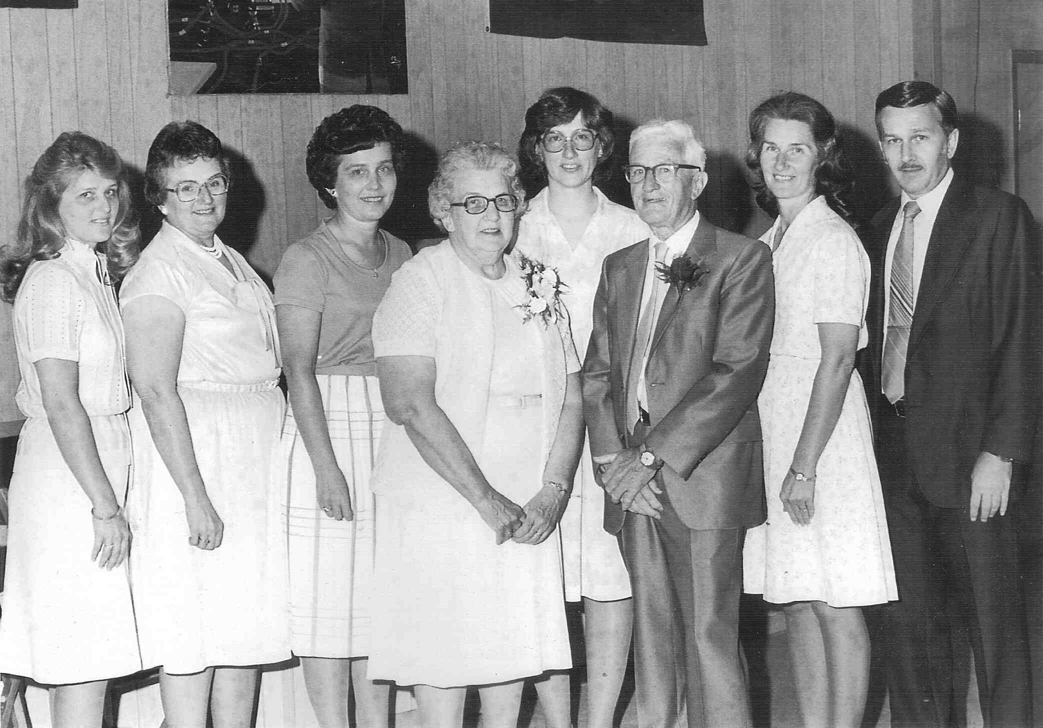 • Anniversary: 50th Wedding Anniversary Photo. J. Byers & Dorothy (Lusher) King in the center.