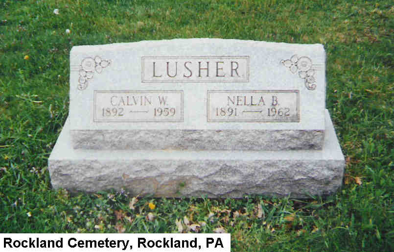 Burial services were conducted Monday in the Rockland cemetery by Rev. Richard Burns in memory of Calvin W. Lusher who died at his home in Homestead. Mr. Lusher was aged 67 years. He was a retired employee of the Mesta Machine Co. He was a son of the late J. C. and Minnie Berringer Lusher. He came to Rockland from Akron, O., with his parents while a small child and spent his childhood and early life here. He attended the Rockland schools and was a member of the Rockland M. E. Church. He was married to the former Nella Smith of this place who survives. Also one son Francis Robert of Baltimore, Md., and one daughter Mrs. Warren (Linna) Noel of Homestead. A brother Howard of Cleveland, O.; two sisters Mrs. Roy Resser and Viola Lusher of Akron, O., and four grandchildren.
