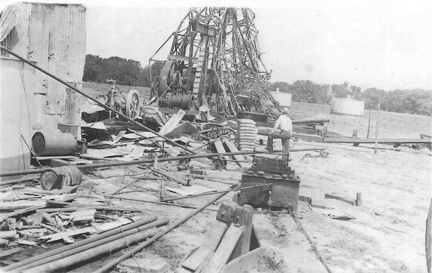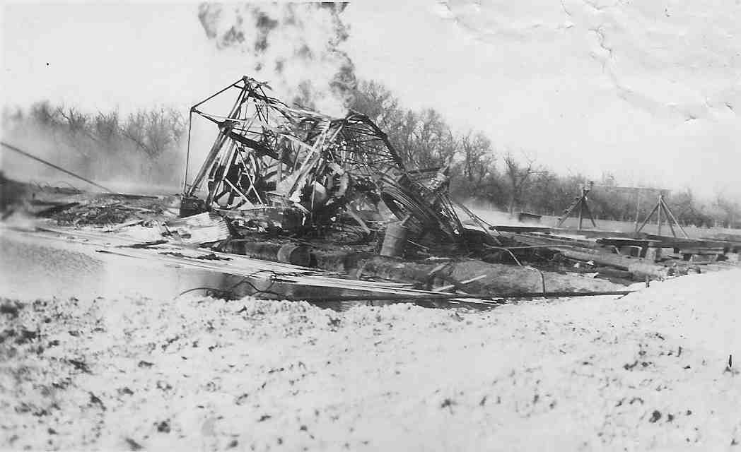 • Additional Image. Although unmarked, this photo was in a family photo album and it therefore seems likely that it depicts the wreckage of the oil well that exploded, causing his death.