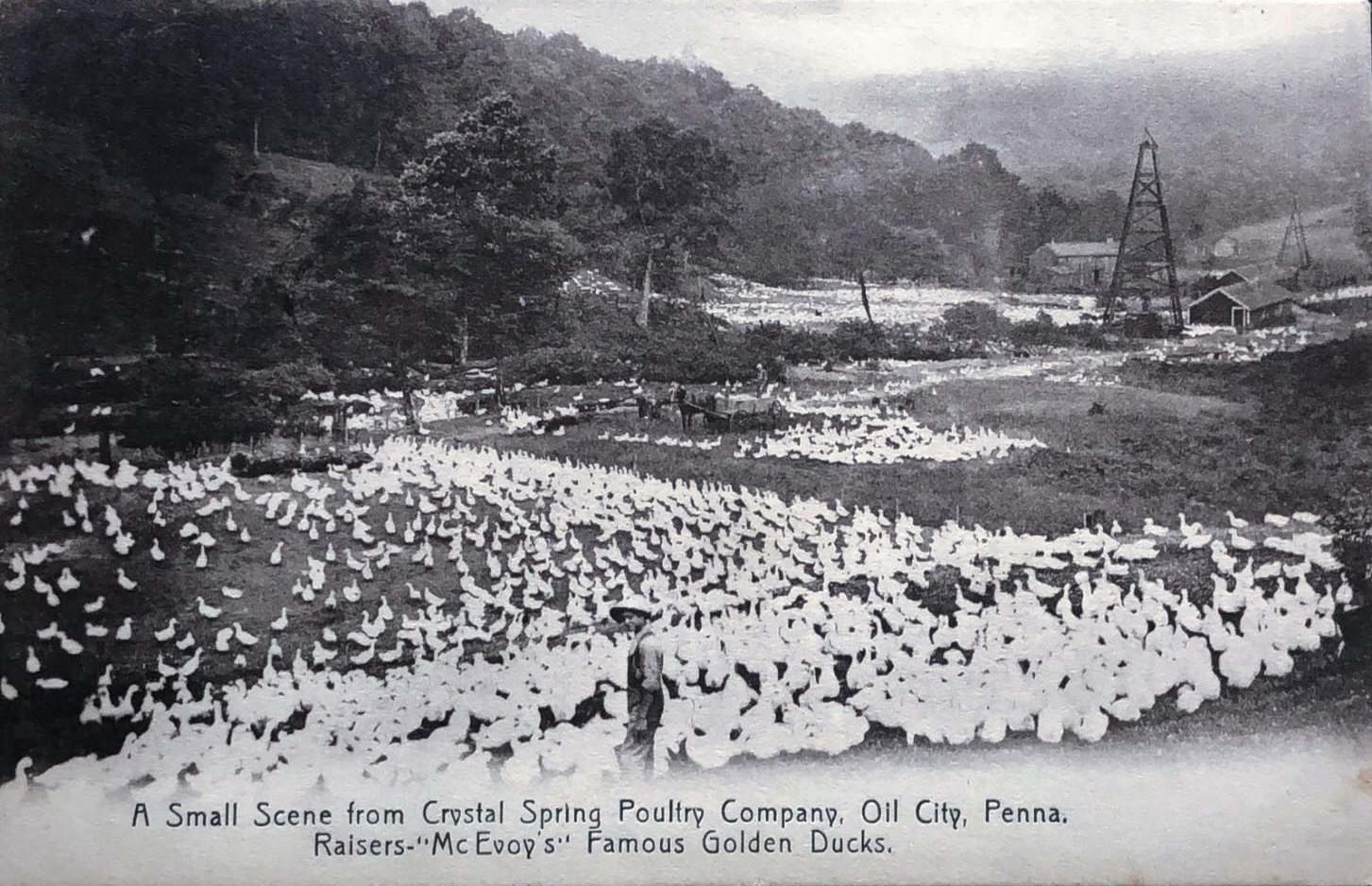 He was president of the Crystal Spring Poultry Co., which farm was started by his father-in-law after his retirement from the Standard, owing to ill health, the property, which was a few miles out from Oil City, having been developed as a duck farm with the same energy which he put into all his undertakings. It was the largest farm of its kind in Pennsylvania, and from the beginning was conducted on a strictly business basis, as many as eighty-four thousand ducks having been raised for the mar-ket in one season.