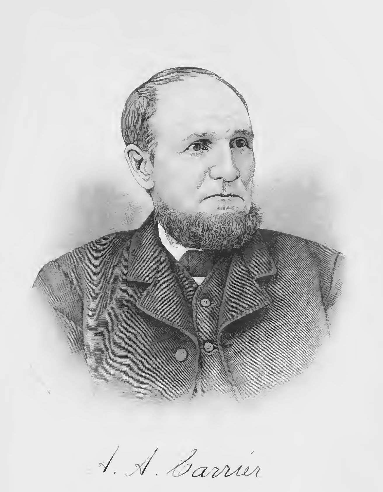 He was born in Connecticut and settled in Jefferson County, Pennsylvania, in 1828, on the farm thereafter known as the old homestead and continuously occupied by members of the Carrier family into the middle of the twentieth century. Soon after his arrival in Jefferson County, he made the trip to Connecticut and brought back with him his wife of a few months, Harriet R. Buell, of Colchester, Connecticut. Having purchased fifty acres in Clover (then Rose) Township, he subsequently purchased seventy more acres and developed it until he had a valuable farm and comfortable home. In his youth, he learned the millwright's trade, adopted by many other members of this family, and acquired a high degree of proficiency in his craft, which led to many demands upon his services. In addition he lumbered on the Clarion River and on Red Bank Creek and successfully operated the homestead farm. [HNWP, 578]