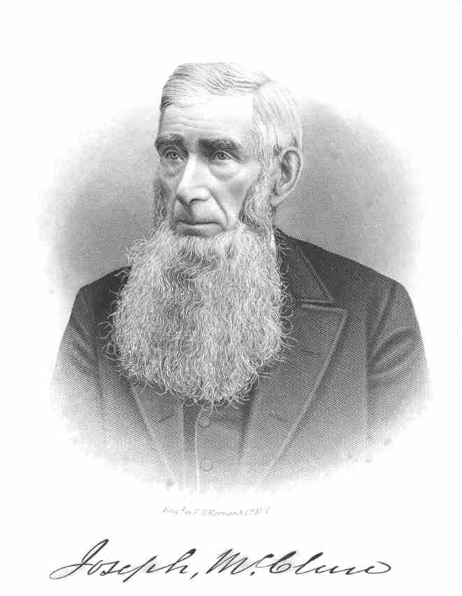 During the construction of the Beaver & Erie Canal he began working on that project in Beaver County, Pennsylvania, and while engaged at his labors on the canal learned the stone-cutting trade. He continued working and contracting on the same public improvement till arriving at Clarksville, Mercer County. There he met and married his wife. He soon returned to the old home in Beaver County, where he remained till 1840, when he sold the farm and removed to Clarksville, where he engaged in merchandising, while also conducting stores at other points in Mercer County. In 1846 he and his brother John formed a partnership with B. B. Vincent and David Himrod, and under the firm name of Vincent, Himrod & Co. erected the first blast furnace in Sharpsville, and Joseph located at that point. After a trial of several years, this venture proving unsuccessful, he returned to Clarksville and resumed the mercantile business in connection with farming and contracting. About 1859 he gave up the mercantile trade, but continued farming and contracting until he retired from active business about 1888. He was a Whig until 1854, when the growth of Know-nothingism made him a Democrat, which he remained until the breaking out of the war. He then voted with the Republicans until 1863, when he again became a Democrat, and thereafter supported the principles of that party. He was a member of the United Presbyterian Church, and was connected with the growth and development of the Shenango Valley for nearly half a century. [HMC 1888, 909]