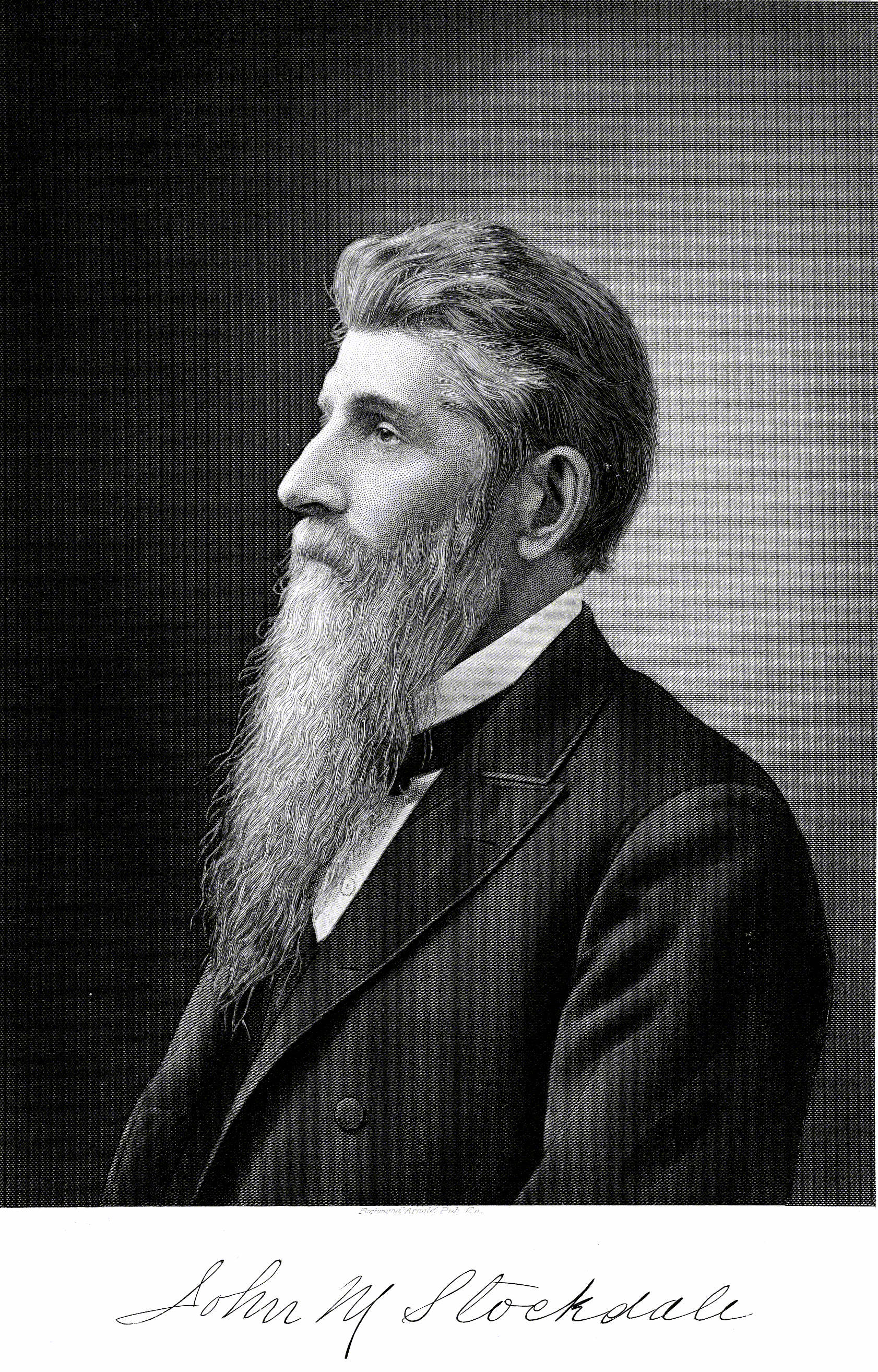 He was born and reared on the farm, was sent to an academy to prepare for college, and graduated from Washington College in 1849. He studied law with T. M. T. McKennan, and his son Judge William McKennan, of Washington, Pennsylvania, and was admitted to practice in 1852. In 1853 he became the owner and editor of the Waynesburg (Greene county) Messenger, the only Democratic newspaper in the county. In 1854 he was elected, on the Democratic ticket, to represent Greene county in the State Legislature, and was re-elected in 1855. In 1856 he went to the Northwest for recreation and health, but became connected with business matters in Fort Dodge, on the Des Moines river, Iowa, and remained there until 1865. In the meantime he was appointed (in 1857) Register of the Government Land Office in Fort Dodge, which he held until July, 1861. During his residence there he dealt very largely in real estate, having bought and sold more than two hundred thousand acres of land, as the records show; but the Civil war depressed or destroyed, for the time, nearly all land values in the Northwest, and made real estate a hazardous investment. In 1863 Mr. Stockdale, in his absence, was nominated for the State Senate from his district in Iowa, but declined to accept the nomination. In 1864 he was an elector on the McClelland ticket. In 1865 he removed to the city of Baltimore, where he engaged in the wholesale drug trade in the well-known house of Stockdale, Smith & Co., on the corner of Howard and German streets, and also in a Petroleum Oil Refinery near the shipping wharves, until the Standard Oil Co., by methods now well known, secured control of all pipe lines and means of transportation, including heavy special rebates that crushed all competitors. In 1881 Mr. Stockdale removed to Washington, Pennsylvania, and published the Review and Examiner until 1886 when he retired from journalistic work and entered a law office in Washington. In 1884 he received the nomination of the Democratic party for Congress in a District embracing Washington, Beaver and Lawrence counties. In 1883, when the project was untested by experience, he applied for and secured a State Charter, for the transportation and consumption of natural gas for "heat and light." The prosecution of the project by a company of enterprising citizens resulted in the development of natural gas and oil in the immediate vicinity. [BRWC, 393]